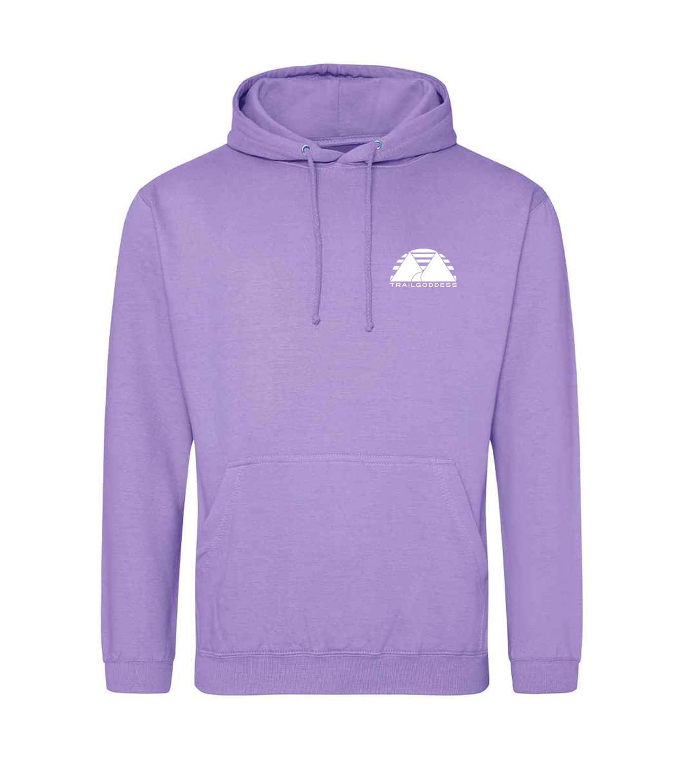 Crafted with a blend of comfort and style, this hoodie comes in bold, vibrant Lilac hue, with self colour drawcords. The Trail Goddess logo is printed in white on the front and rear of this garment.