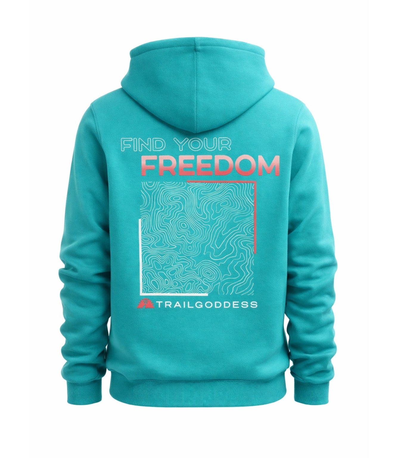 Designed as a once-a-year release, this limited-edition hoodie features a Scottish mountain topographic map, honouring the wild places that inspire everything we do. Printed in a vibrant, rich teal blue, it carries the words Find Your Freedom alongside Trail Goddess Trail Running Community 2023 - a quiet marker of belonging rather than a bold statement.